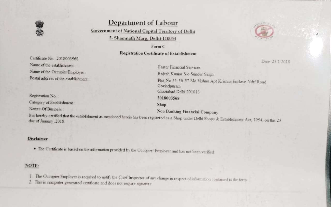 Dear Friends, We are running a firm in the name & style of Faster Financial Services an authorized Direct Sales Associate (A Loan Provider) in Delhi/NCR since from 2017. we have associated with multiple Bank's and NBFC's like Ujjivan Small Finance Bank, IDFC Bank, Aadhar Housing Finance Ltd, Hinduja Housing Finance ltd, Kifs Housing Finance Ltd, Ummed Housing Finance Ltd, I2I Funding, ICICI Bank, Hdfc Bank, Gic Housing Finance Ltd, Indiabulls Housing Finance Ltd etc. We will deals in all type of Loan's and insurance policy's like Home Loan, Construction Loan, Property Renovation Loan, Plot Purchase Loan, Property Mortgage (Loan against property), Seller BT, Personal Loan, Business Loan, Overdraft Limit (ODCC) Limit, Car Loan, Commercial Vehicle Loans and Car insurance, Commercial Vehicle Insurance and General Insurance etc.